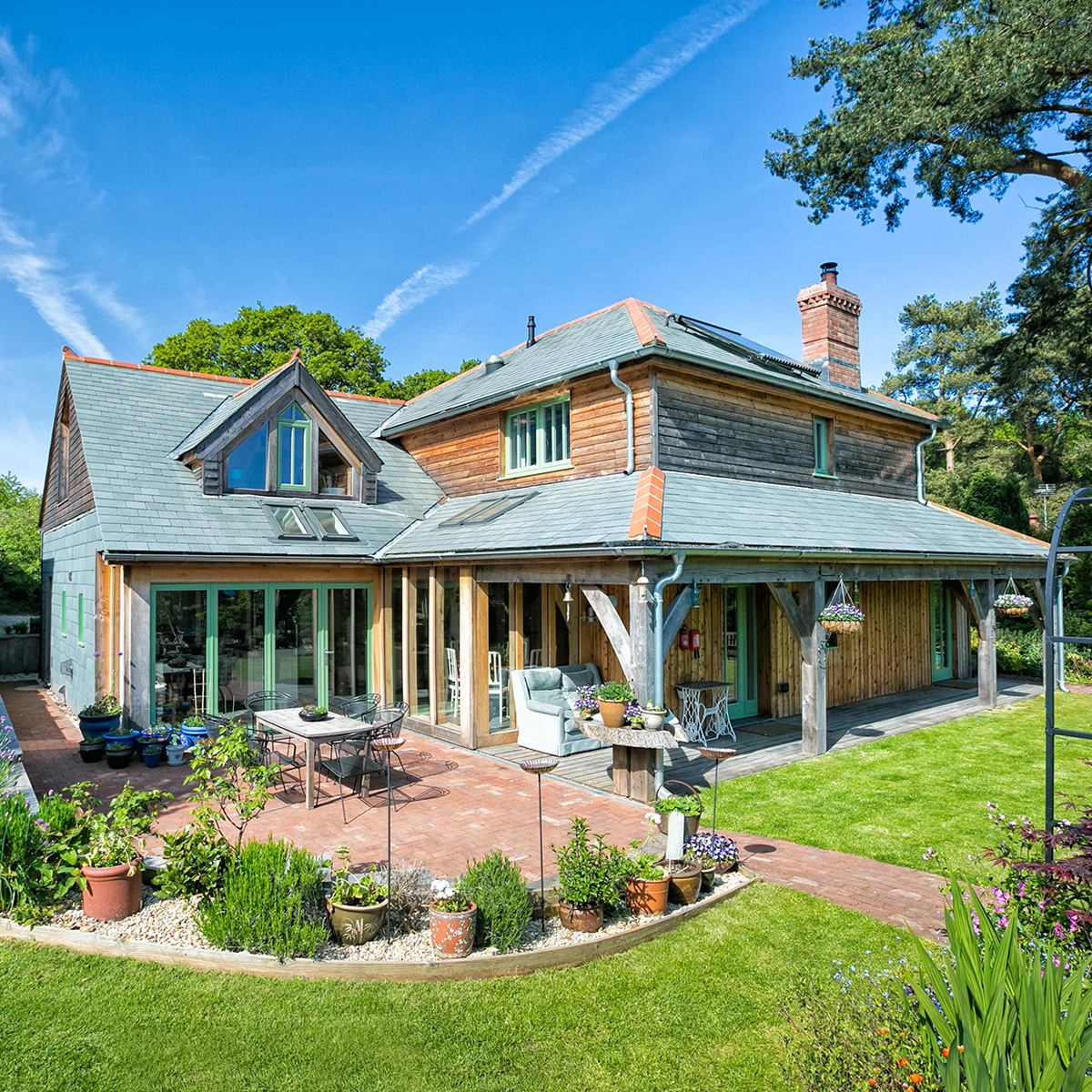 This straw bale, oak-framed farmhouse nestled in a vineyard in the heart of the Essex countryside beautifully combines traditional craftsmanship with sustainable building practices.